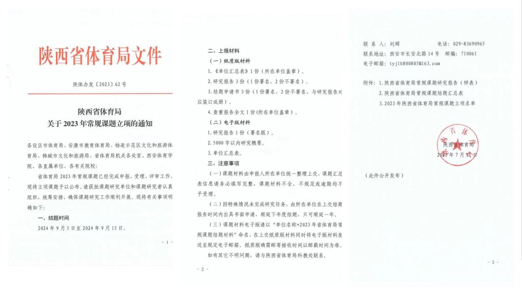为贯彻落实《关于加快建设体育强省的实施意见》《陕西省“十四五”体育事业发展规划》,不断提升我省体育科研理论水平,助力我省体育事业高质量发展。 近日,陕西省体育局公布了关于2023年常规课题立项的评审结果,...
