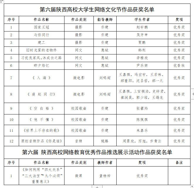 近日,中共陕西省委教育工委、中共陕西省委网信办公布了《第六届陕西高校大学生网络文化节和网络教育优秀作品推选展示活动作品拟获奖名单》。雷竞技官网13项作品获奖。据悉,为深入学习贯彻习近平新时代中国特色社会主义...