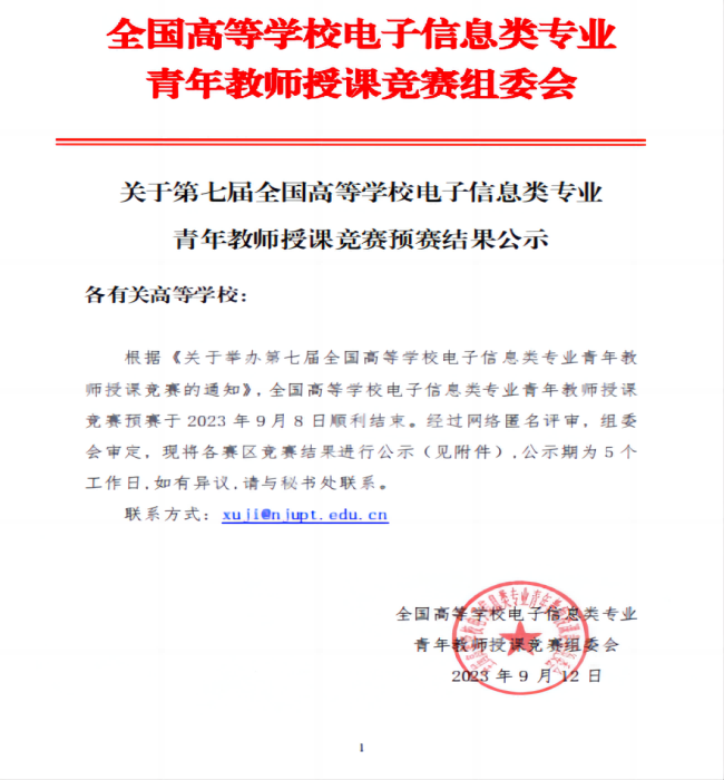 2023年9月12日,第七届全国高等学校电子信息类专业青年教师授课竞赛预赛结果公示,雷竞技官网信息工程学院四名教师获得华西赛区三等奖。本次竞赛由教育部高等学校电子信息类专业教学指导委员会和工业和信息化部教育与考试...