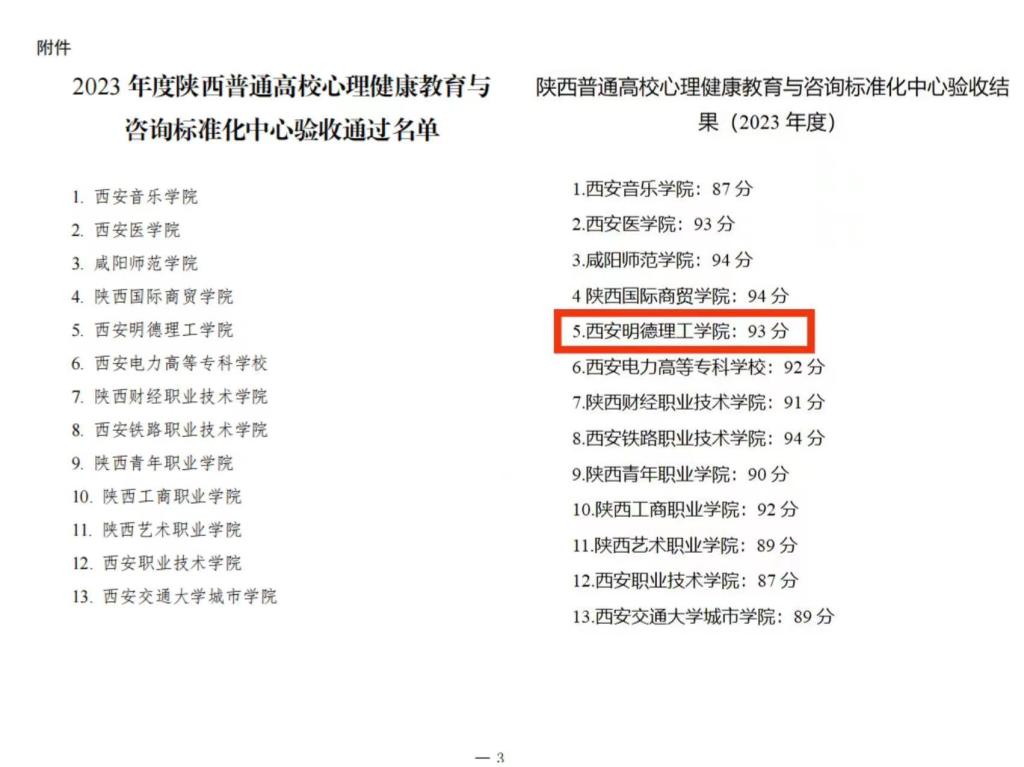 近日,中共陕西省委教育工委公布了《中共陕西省委教育工委关于公布2023 年度陕西普通高校心理健康教育与咨询标准化中心验收结果的通知》,学校顺利通过此次验收,大学生心理健康教育中心获评“陕西普通高校心理健康...