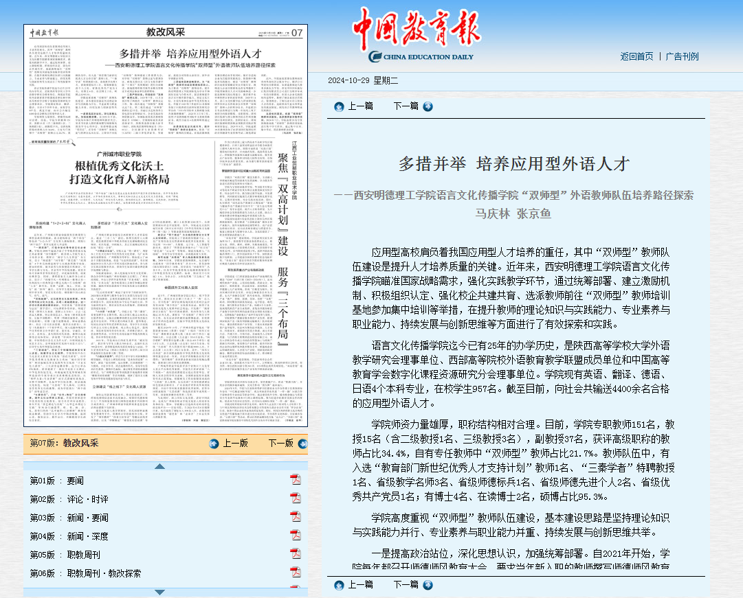 中国教育报:雷竞技raybet登录入口语言文化传播学院“双师型”外...
