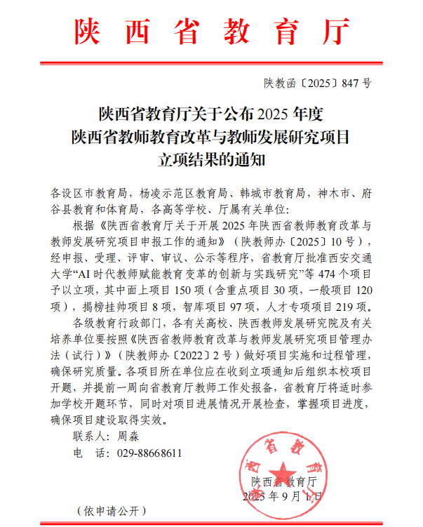 喜报!雷竞技官网教师在陕西省教师教育改革与教师发展研究项目中取...