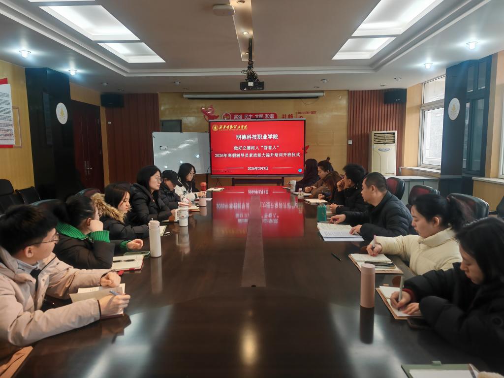 为提升辅导员在学生思想政治教育、日常管理服务、心理健康引导等关键环节的专业素养与工作效能,进一步强化其作为学生成长引路人的角色定位,推动学院学生工作迈向新台阶,2月3日上午,明德科技职业学院在明理楼2...