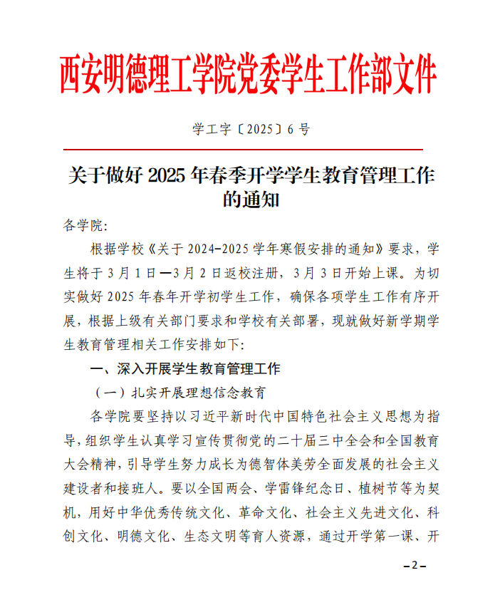 寒假期间,党委学生工作部认真贯彻全省、学校安全稳定工作会议精神及学校各项工作部署,落实好学生安全教育管理各项工作。一、做好学生教育管理印发《关于做好2025年度寒假学生安全教育工作的通知》《关于做好2025...