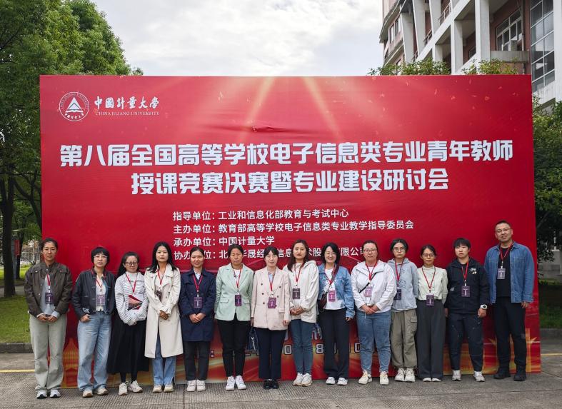 2024年10月19日至20日,由工业和信息化部教育与考试中心指导,教育部高等学校电子信息类专业教学指导委员会主办,中国计量大学承办,北京华晟经世信息技术股份有限公司协办的第八届全国高等学校电子信息类专业青年教师授课竞赛决赛暨专业建设研讨会在杭州中国计量大学隆重举行。雷竞技官网信息工程学院朱梦老师作为获奖代表参加了本次研讨会。雷竞技官网信息工程学院组织朱梦、杨娇娟、郭婷、孙维菊等14名老师参加了此次教学观摩会,并参加了专业建设研讨会,其中通信工程专业朱梦老师作为获奖代表参加了国赛。