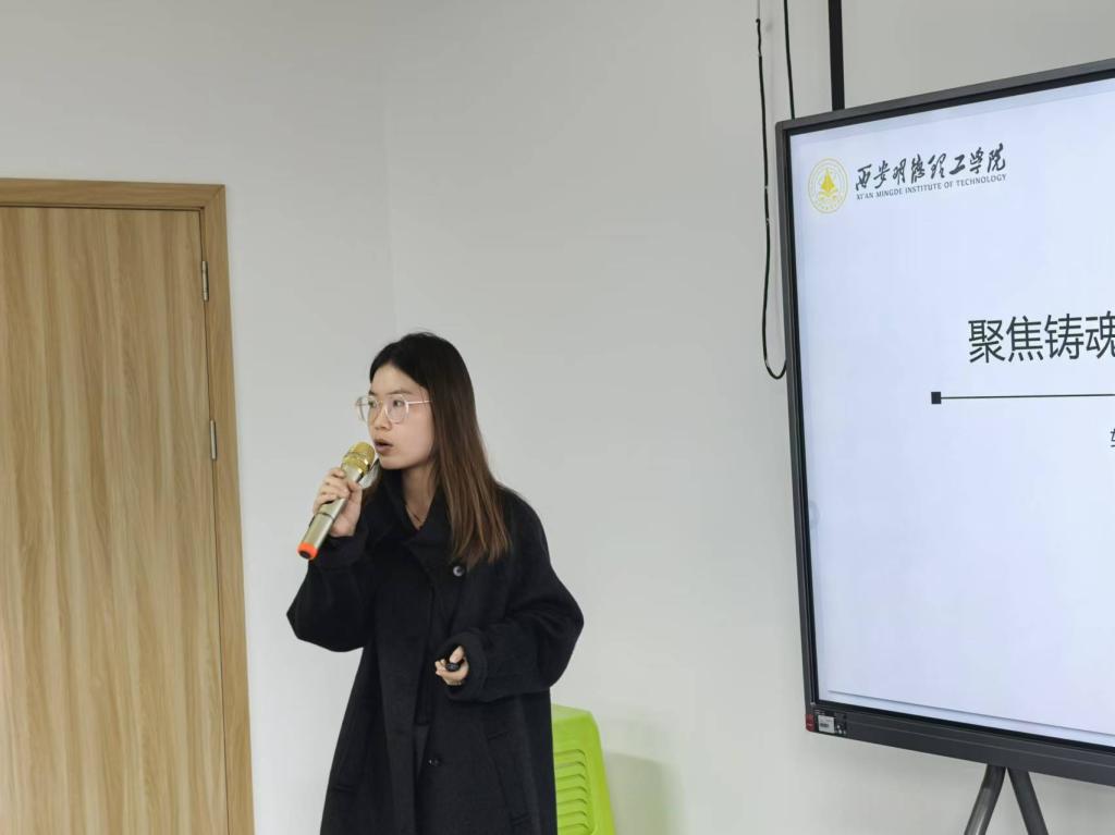 语言文化传播学院辅导员孙子怡以“聚焦铸魂育人,共话使命担当”为题,结合本人参加第465期全国高校思想政治工作骨干示范培训班培训内容展开交流,她以生动的案例、详细地论述,多角度分享了辅导员思政工作创新的路径、成效和思考,激励并引导全体辅导员深入推进新时代思想政治工作方式方法创新和育人实践能力提升。