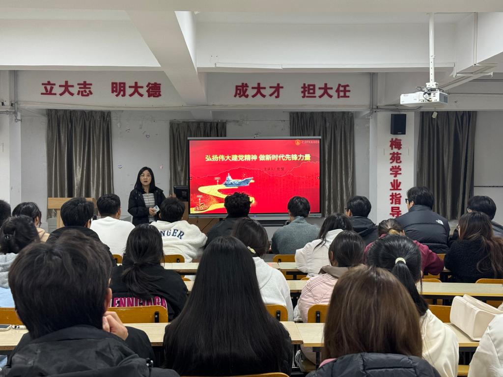 课上,宏莹老师以“弘扬伟大建党精神 做新时代先锋力量”为题,生动讲述了“坚持真理、坚守理想,践行初心、担当使命,不怕牺牲、英勇斗争,对党忠诚、不负人民”的伟大建党精神的深刻内涵。她谈到,伟大建党精神不仅是中国共产党的宝贵财富,更是激励当代青年勇攀高峰、不懈奋斗的精神灯塔。宏老师深入剖析了伟大建党精神在新时代的实践意义和价值导向,面对世界百年未有之大变局,勉励青年一代坚定理想信念,勇于担当作为,以实际行动践行社会主义核心价值观,成为推动社会进步和时代发展的生力军。互动交流环节,同学们纷纷表示,用伟大建党精神指引前进方向,融入日常学习、生活和未来的职业规划中,现场气氛热烈融洽。