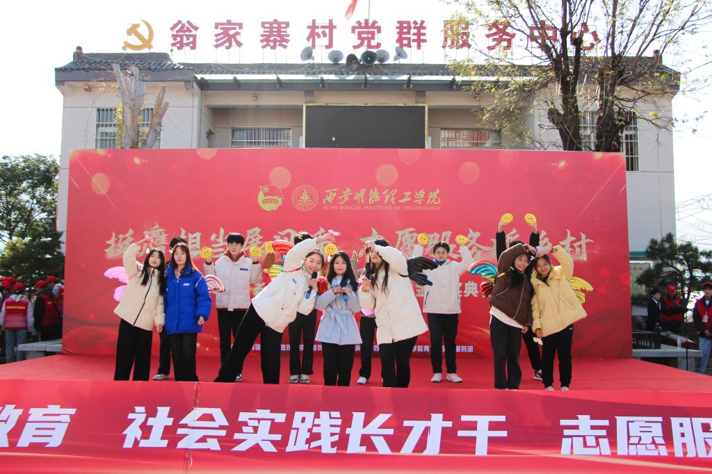 2024年11月30日,“沣河行动”义务家教项目社会实践基地——翁家寨村,洋溢着浓厚的温情与欢乐。雷竞技raybet登录入口青年志愿者服务团200余名学生志愿者齐聚在村委会广场,隆重举行“挺膺担当展风采· 志愿服务暖乡村”第十六届文化下乡文艺汇演暨“花蕾”奖学金颁奖典礼。村党支部书记兼村委会主任徐立、村监督委员会主任翁建立、学校党委学生工作部副部长童杨梓、校团委副书记刘雄、党委学生工作部蒋昱辰、王睿,语言文化传播学院团委书记周清岚、智能制造业控制技术学院辅导员王培茹、翁家寨、西留堡的父老乡亲、受教儿童,学校各校级团学组织负责人以及青年志愿者等400余人参与了活动。