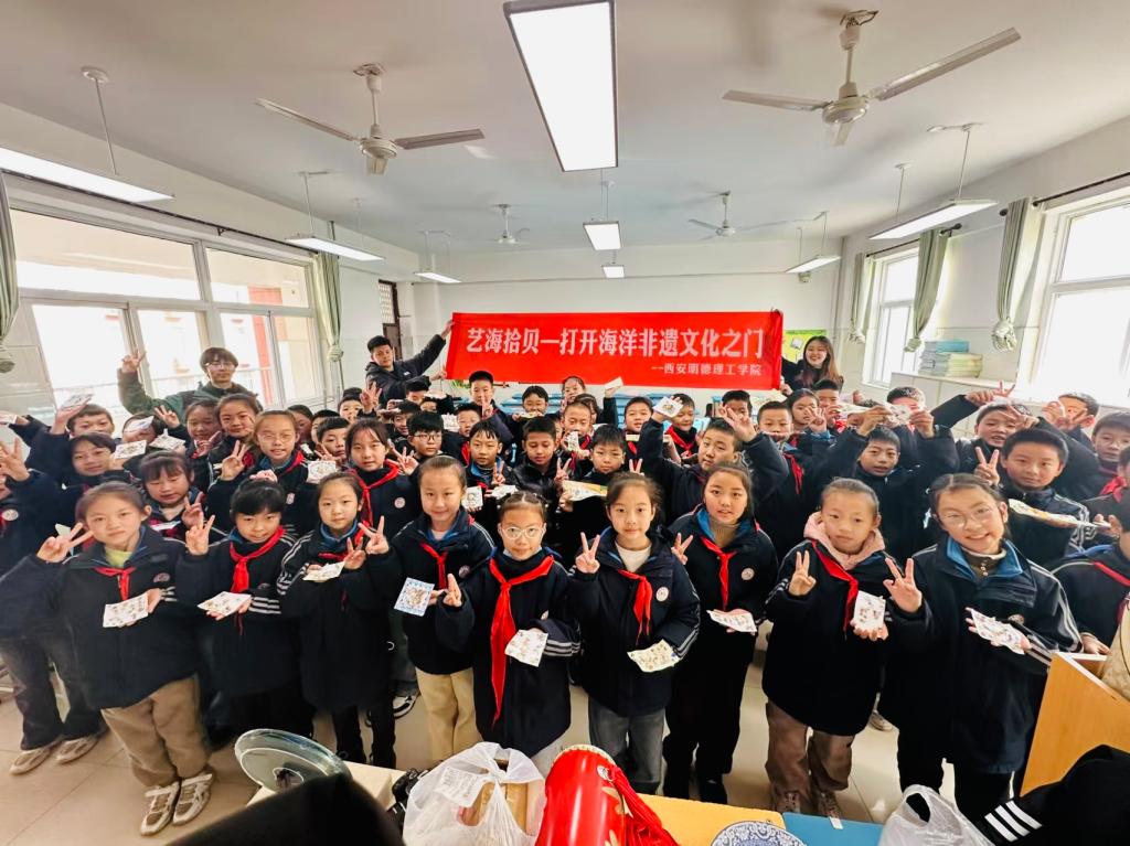 12月5日,雷竞技raybet登录入口经济与管理学院“艺海拾贝——打开海洋非遗文化之门”非遗文化传承实践队一行5人赴渭南高新小学开展“贝韵瓷彩—鼓韵风华非遗集”进校园活动,活动特别邀请了渭南高新小学六年级四班、四年级一班及二年级四班的师生共155人参与。