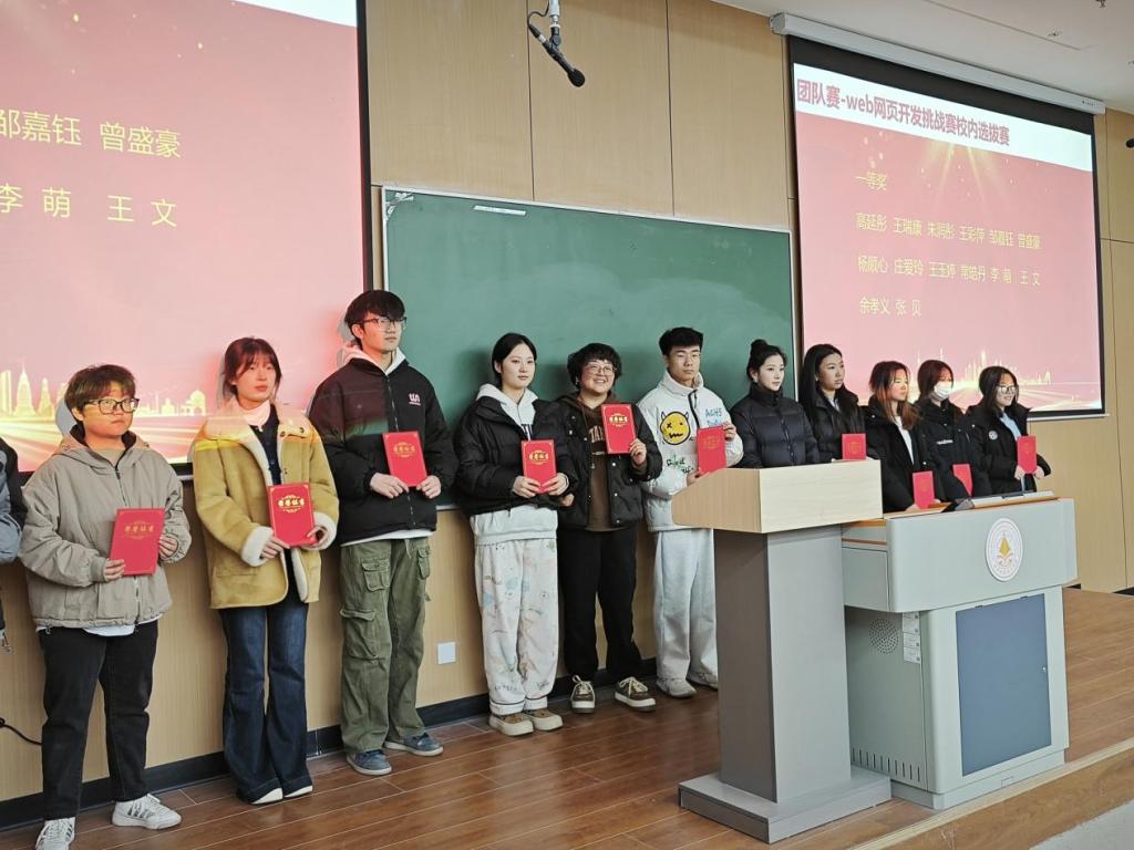 紧接着,颁奖环节在大家的期待中庄重开启。获奖名单逐次公布,各赛道的佼佼者们怀揣着紧张与激动,步伐坚定地迈向领奖台。他们手中的奖状奖杯闪耀夺目,那是数月来日夜奋战、精益求精的最好见证。从一等奖得主自信飞扬的笑容,到二等奖、三等奖获得者眼中炽热的光芒,每个人脸上都镌刻着收获荣誉的喜悦与对未来技术之路的无限憧憬。台下师生们的掌声此起彼伏,敬意与祝福满溢其间,现场气氛一次次被推向高潮。
