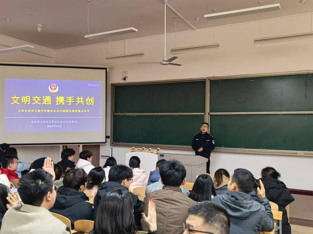 为切实提高雷竞技官网师生交通安全意识,教育引导大家养成文明驾车、平安出行的良好习惯,12月25日,学校组织开展交通安全知识宣传讲座,邀请西安市公安局交警支队长安大队安监中队民警甄龙以“文明交通、携手共创”为题,为全体辅导员以及学生代表进行交通安全宣传专题培训。本次培训由智慧安全警务处处长宋敏纲主持。