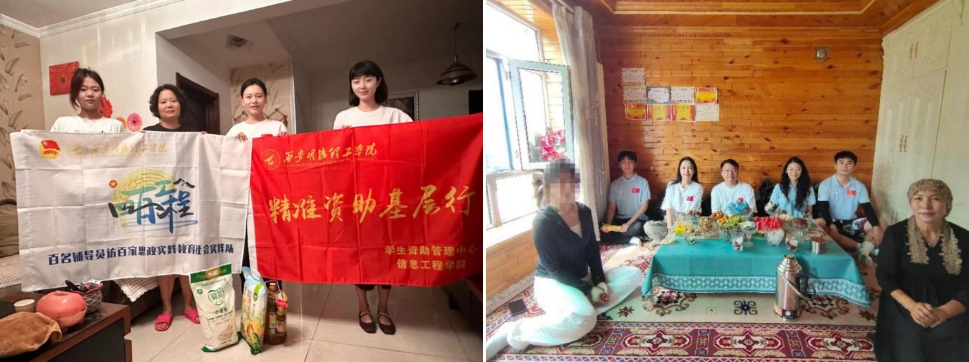 7月-9月,暑假期间,学生资助管理中心与学校“四百工程”思政实践教育专项活动相结合,组织开展“百名辅导员访百家”“精准资助基层行”走访活动,在陕西、重庆、河南、甘肃、新疆等地共走访84个家庭经济困难学生家庭。