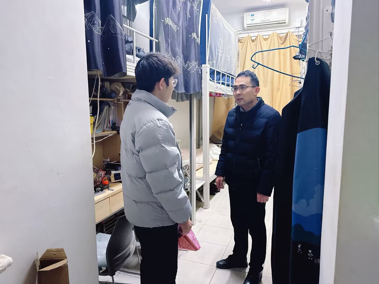 寒假将至,为进一步加强学生宿舍的安全管理,及时排查学生宿舍中存在的安全隐患,预防和避免安全事故发生,全面了解学生的离校情况。1月16日,党委学生工作部联合后勤管理处、智慧安全警务处深入“一站式”学生社区,对学生宿舍进行全覆盖安全隐患联合大排查。