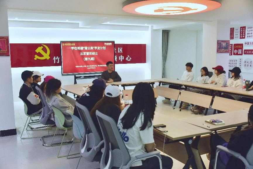 为充分发挥朋辈引领作用,助力奖助学生科学规划学业生涯,4月9日晚,学生资助管理中心联合明德科技职业学院在竹苑一站式学生社区联合举办“蒲公英”学友计划学习经验分享会。活动特邀从中专逆袭至本科、退役不褪色的励志学子曹高鹜担任主讲,分享其从职校生到军营战士、再到陕西师范大学准研究生的奋斗历程。活动由学生资助管理中心蒋昱辰主持,吸引20余名受助学生参与交流。