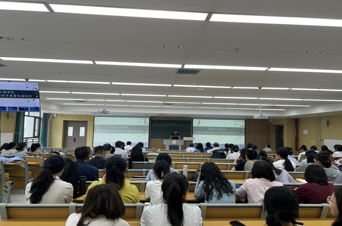 5月14日,信息工程学院在7号楼401教室召开教职工大会,开展全院教职工政治理论学习活动,并围绕试卷命题规范、教学环节质量标准开展专题培训。会议由学院副院长范晖主持,全体教师参加。