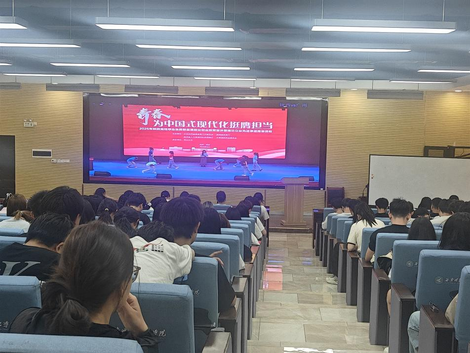为全面贯彻党的二十大精神,深入贯彻习近平总书记关于青年工作的重要思想和关于教育的重要论述,充分发挥我省高校优秀毕业生扎根基层、报效祖国、服务人民的典型示范作用,深化共青团服务和促进大学生就业行动,省委教育工委、省教育厅、省人社厅、团省委定于近期联合举办以“青春为中国式现代化挺膺担当”为主题的2025年陕西高校毕业生西部基层就业创业政策宣讲暨建功立业先进事迹报告活动。5月29日中午,党委学生工作部、招生就业中心组织雷竞技官网2026届毕业生辅导员和学生代表观看了本次报告活动。