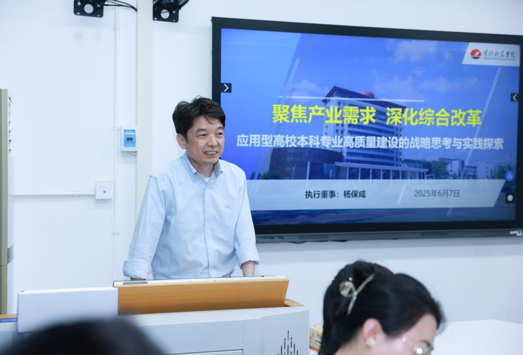 杨保成作“聚焦产业需求 深化综合改革 应用型高校本科专业高质量建设的战略思考与实践创新” 专题报告,系统剖析应用型高校专业建设中存在的专业结构适配度不足等问题,阐释黄河科技学院破解难题的综合改革思路和实践探索。