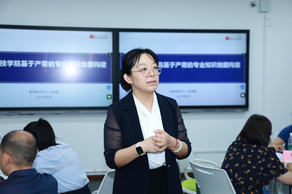 李海霞以“基于产需的专业知识地图构建”为主题,详细介绍黄河科技学院本科专业知识地图构建的推进路径。