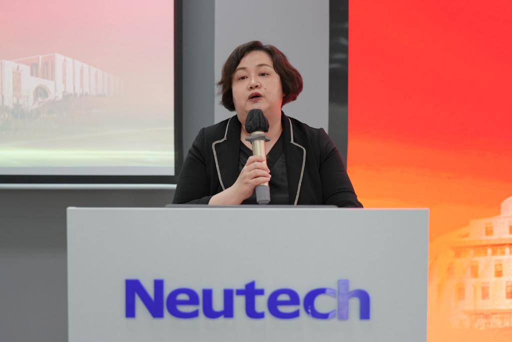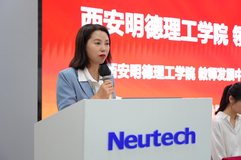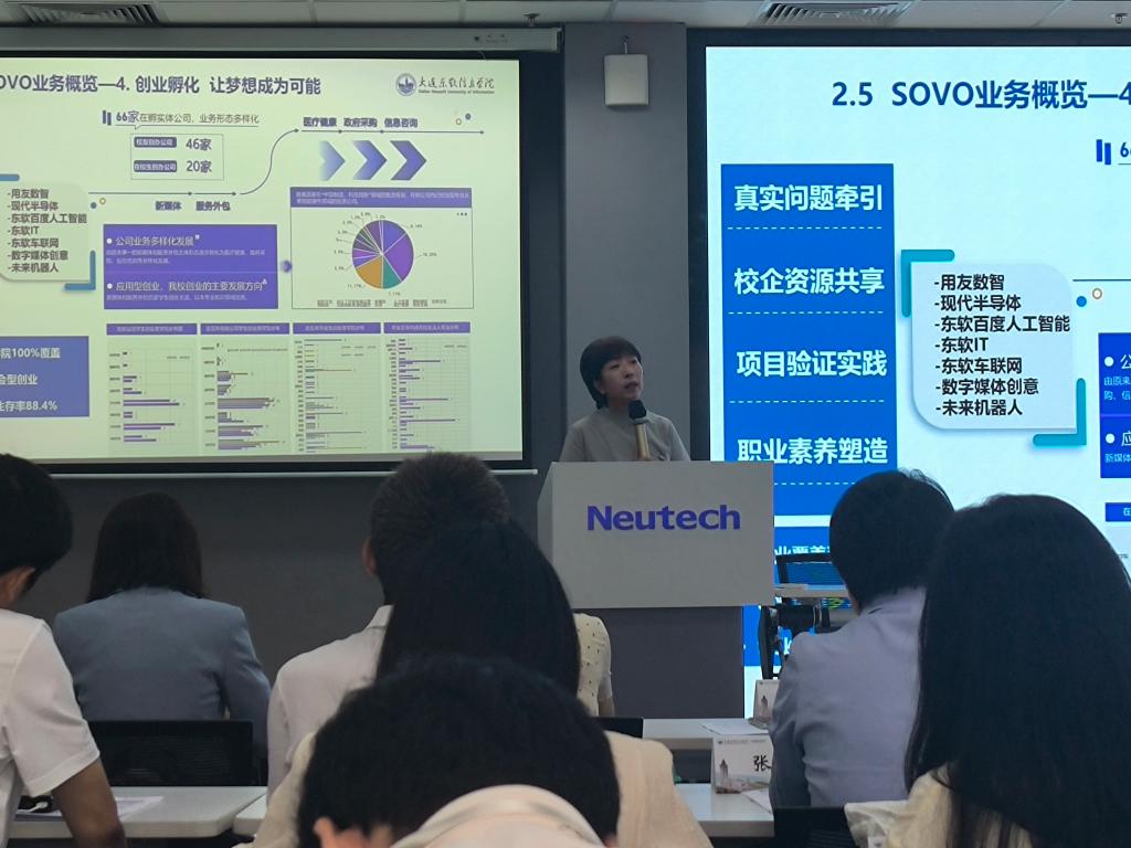 郝丽静老师做培训动员,“希望各位老师珍惜此次学习机会,把东软的先进经验带回学校,助力学校本科合格评估工作,提升应用型人才培养质量。”