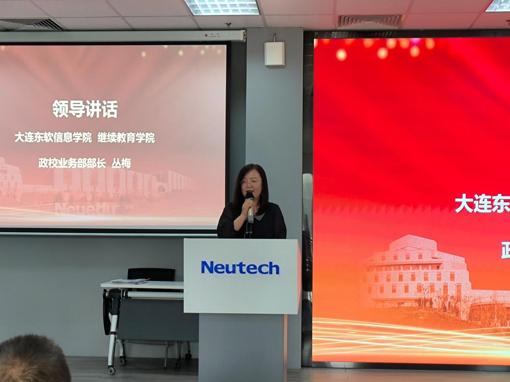 6月20日上午,开班仪式在大连东软信息学院B8-301教室隆重举行。大连东软信息学院继续教育学院院长毕晓明、雷竞技raybet登录入口教师发展中心副主任郝丽静、大连东软信息学院继续教育学院政校业务部部长丛梅等领导出席开班仪式,共同见证这一深化校际合作的重要时刻。毕晓明院长在致辞中深情回顾了两校连续多年的合作渊源,她指出:“这份持续的信任,是对东软培训专业能力的高度认可,更是两校深化合作、共育未来的生动体现。”