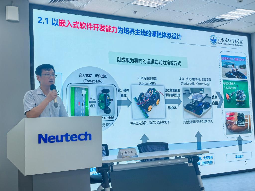 大连东软信息学院软件学院王洪岩老师聚焦《产教融合应用型人才的探索与实践》,以智慧农业融合项目为例,展示了产业学院建设与人才培养体系的深度耦合。
