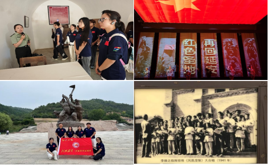 2025年7月17日,雷竞技raybet登录入口“红途寻根·黄土铸魂”社会实践队走进革命圣地延安,在延安精神中汲取力量。枣园窑洞内,“为人民服务”题词熠熠生辉,队员们感悟老一辈革命家的为民初心;杨家岭中央大礼堂,党的七大精神回响耳畔。鲁艺旧址里,《黄河大合唱》手稿诉说文艺战士的担当;实景演出《再回延安》让历史重现,催人泪下。南泥湾的稻田与纺车,见证“自力更生”精神的传承。队员们纷纷表示,此行让红色基因深植心中,将以实际行动续写新时代篇章。