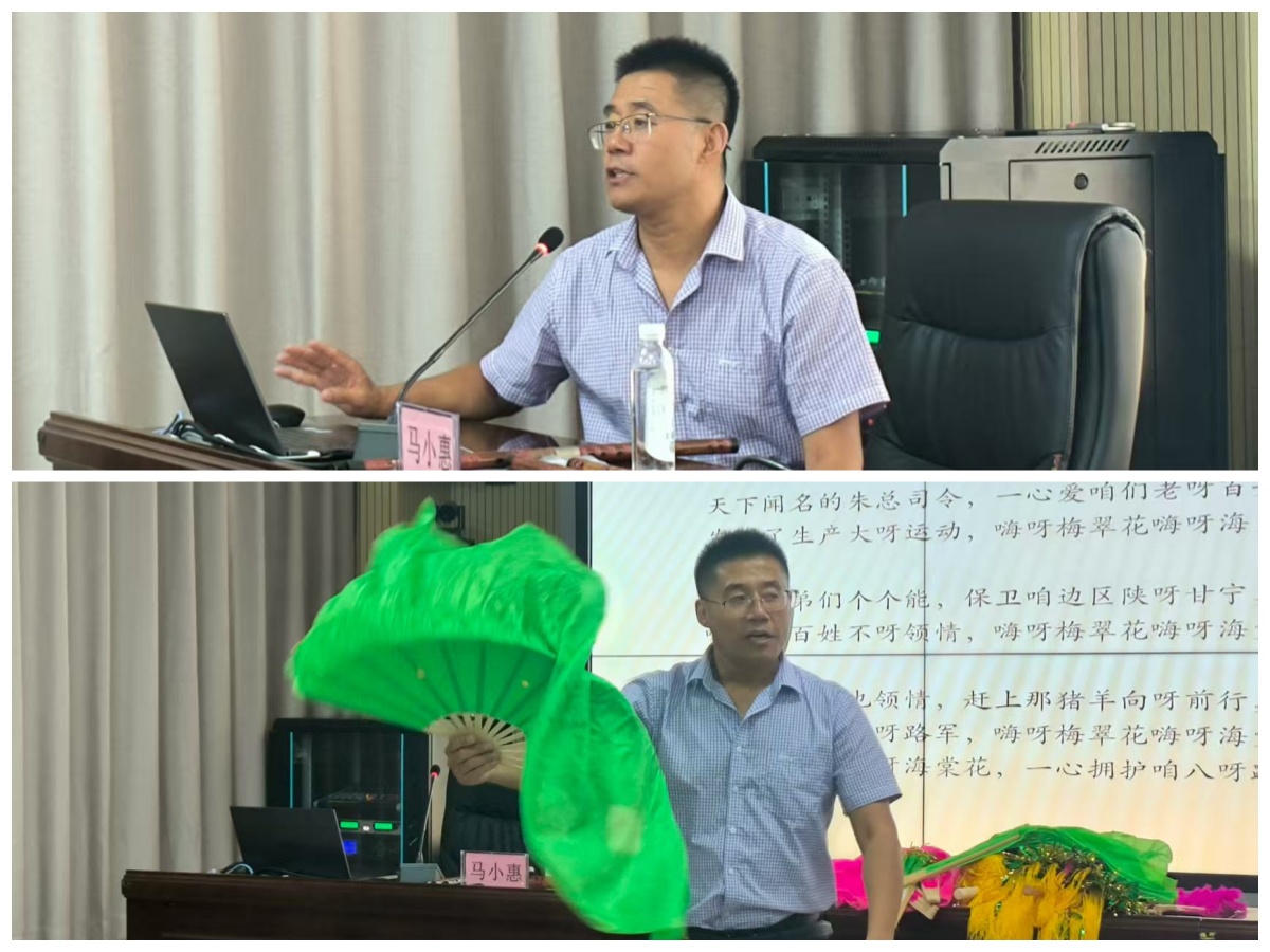 马小惠教授主持“音乐党课”,带领学员学唱《南泥湾》《东方红》等经典红歌,在旋律中回溯烽火岁月,汲取信仰力量。