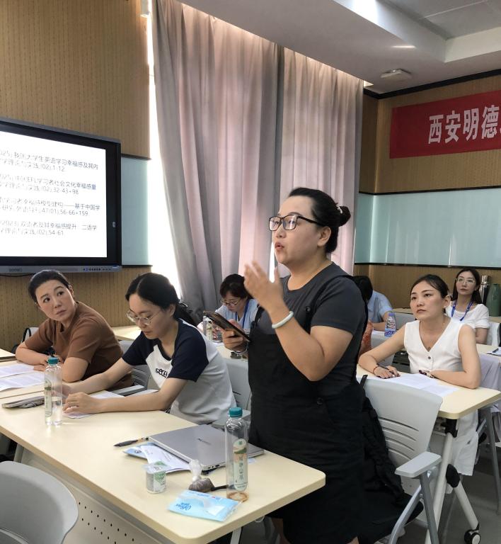 为了让理论落地,她带领学员分组深度研讨了四篇“英语学习者幸福感建构”主题学术论文:从论文核心观点提炼,到研究方法精准把握,到设计AI提示词辅助文献分析,再到分组汇报,指导学员掌握“精准提示词撰写技巧”,让抽象的“科研素养”转化为可操作的“文字能力”,培养了学员们的学术研究素养。