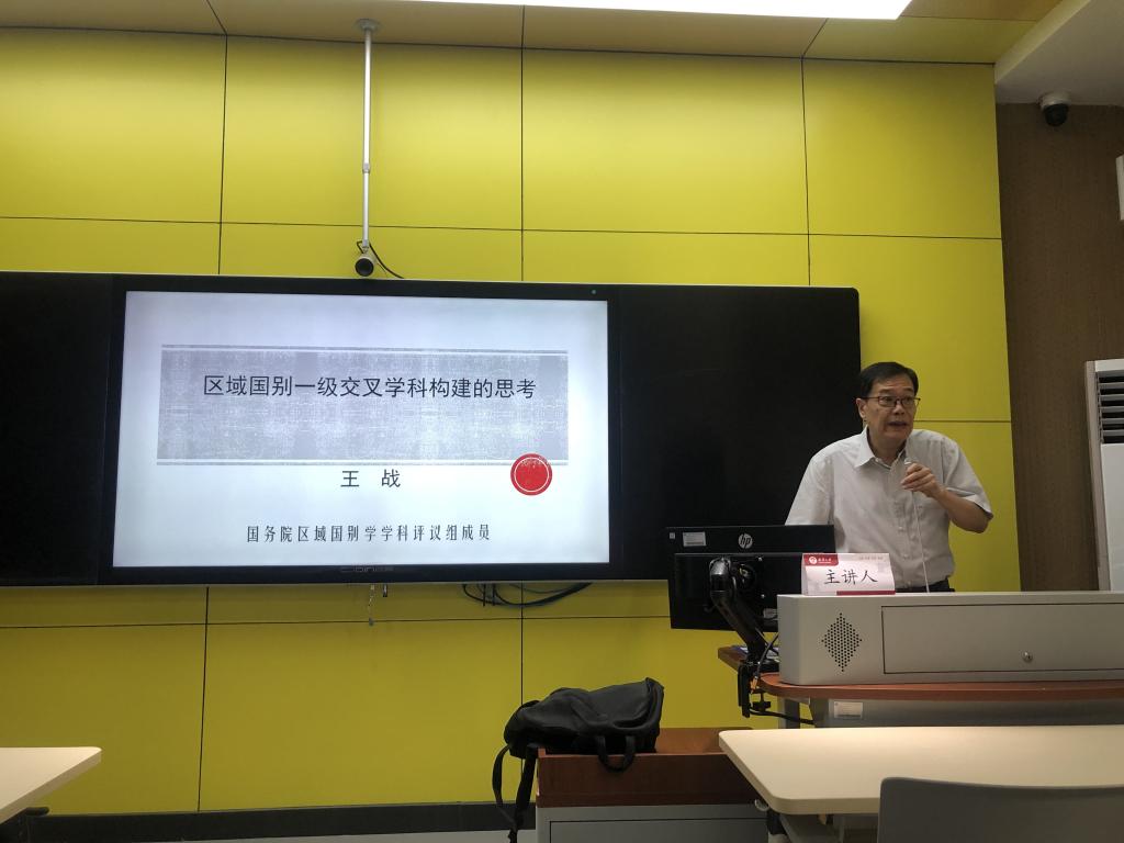 开班首讲特邀国务院学位委员会区域国别学学科评议组成员王战教授,他以“国家战略需求(政策导向)—学科发展历程(内外环境)—学术创新逻辑(定义与方法)”三维框架切入,结合自身主持的国家社科基金重大课题,详解了“理论框架构建—研究方法创新—实地调研落地”的闭环研究路径。针对教师们关心的“跨学科研究如何破题”,他给出“从单一语言研究转向‘语言+区域政治/经济/文化’融合研究”的具体建议,为英语教师拓展跨学科研究视野锚定方向。
