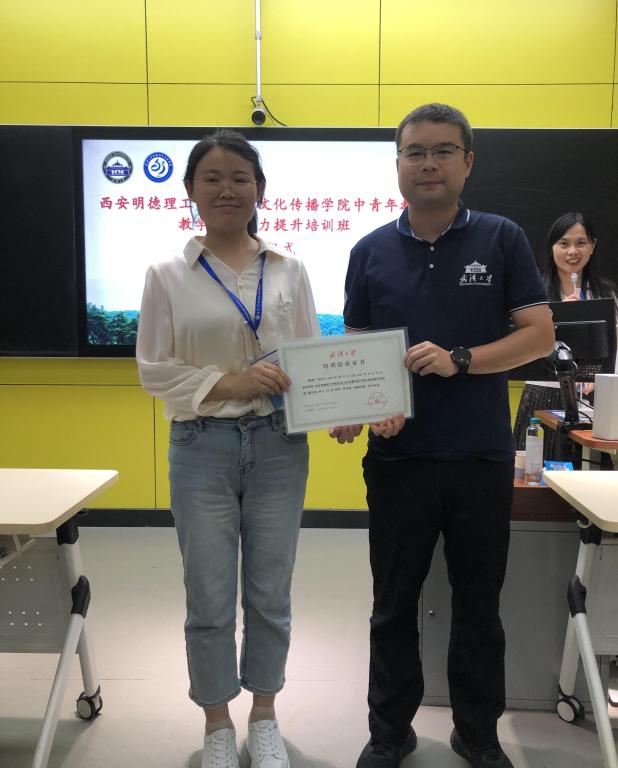 最后,培训班举行了结业仪式,武汉大学张乐飞教授为教师代表霍瑞宁老师颁发证书,这传递的不仅是研修认证,更是对师生共同探索“AI+教学”“技术+科研”融合成果的肯定。