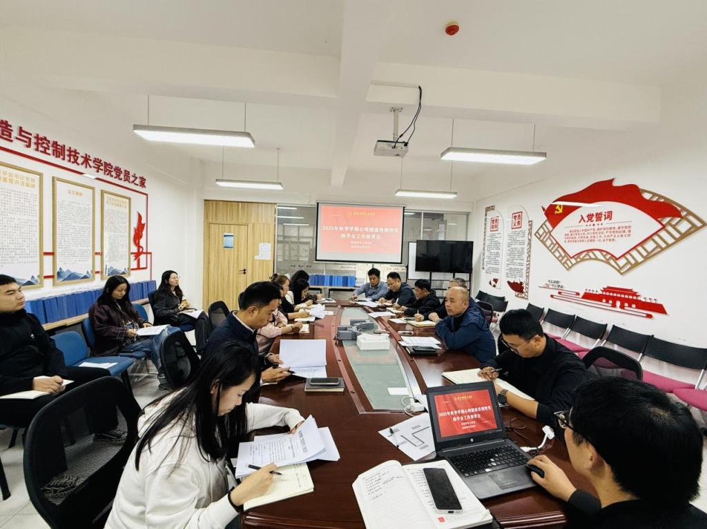 为精准掌握新学期学生心理动态,筑牢学生心理健康安全防线,同时确保奖助学金评定工作公平、公正、公开开展,切实保障学生切身利益,学校于9月23日在明志楼北304召开2025年秋季学期心理健康普测暨奖助学金工作部署会。各学院党委(党总支)副书记、心理专干、资助专干及党委学生工作部相关工作人员参加会议,会议由党委学生工作部部长童杨梓主持。