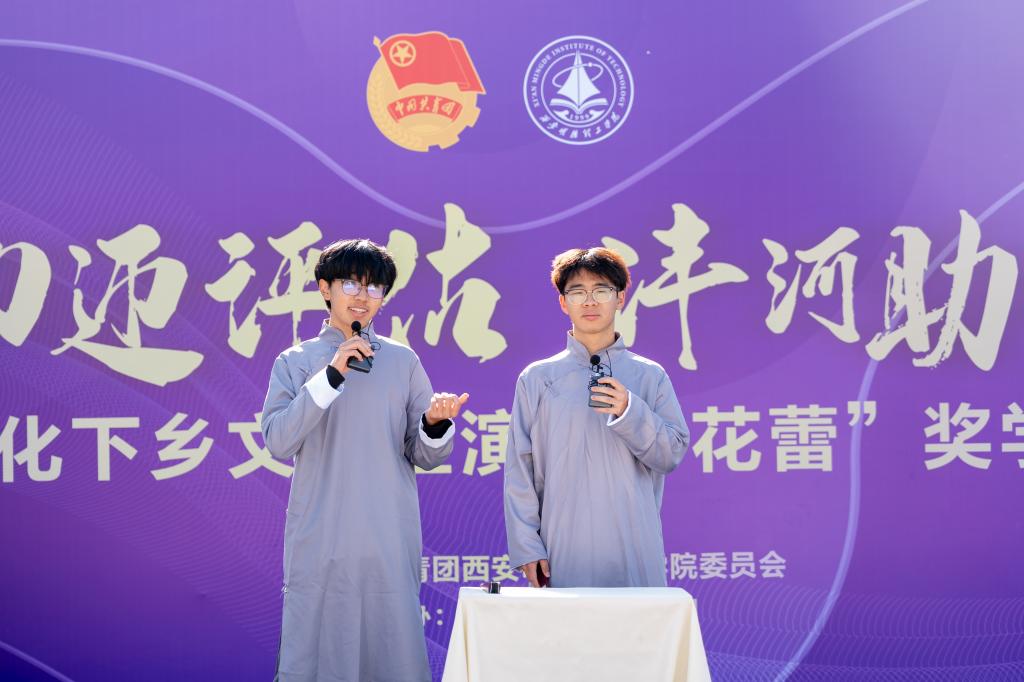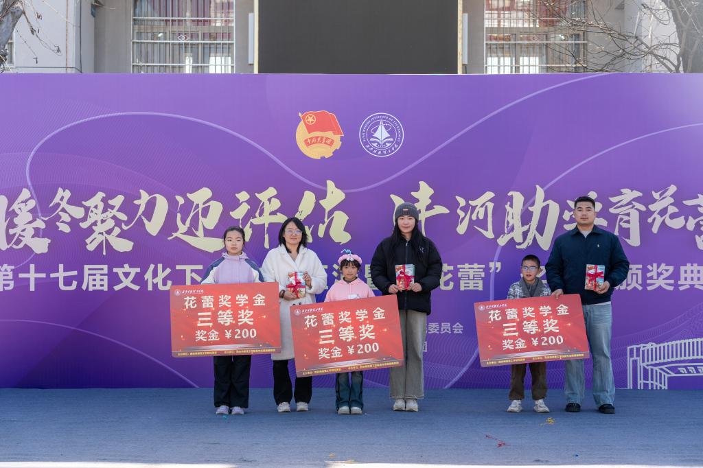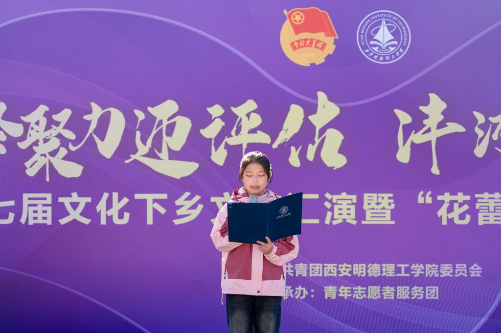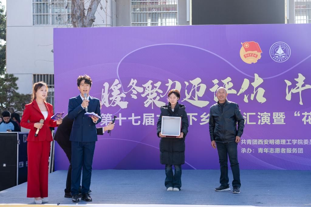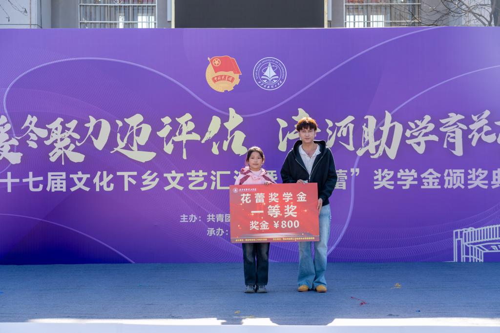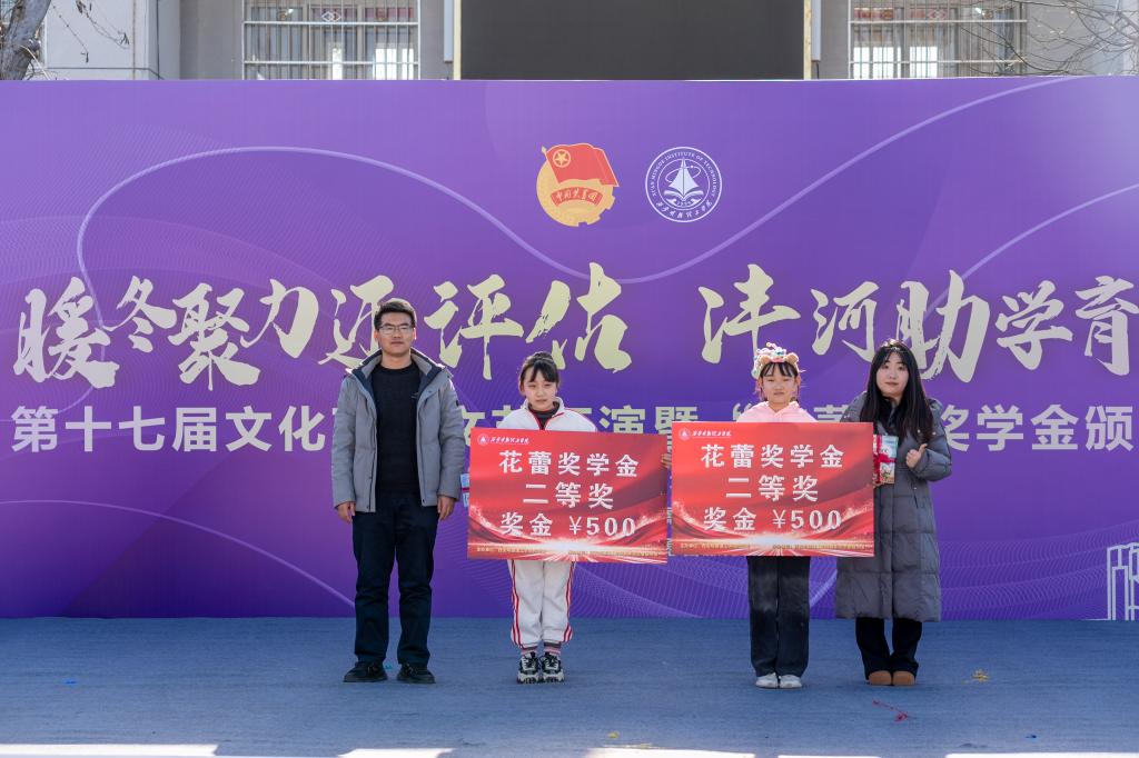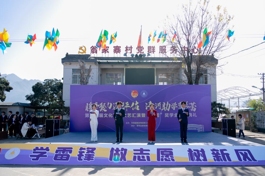 11月29日上午,学校“暖冬聚力迎评估·沣河助学育花蕾”第十七届文化下乡文艺汇演暨“花蕾”奖学金颁奖典礼在“沣河行动”义务家教社会实践基地翁家寨村委会大院隆重举行。翁家寨村委会委员翁长春、西安天爱启智学校执行校长张静、西安沣峪口滦镇养老公寓院长黄兴龙,学校党委学生工作部、校团委、各二级学院相关负责老师,青年志愿者服务团成员,受教儿童及家长代表共计两百余人参加活动,共同见证这场公益助学与文化振兴交融的盛会。
