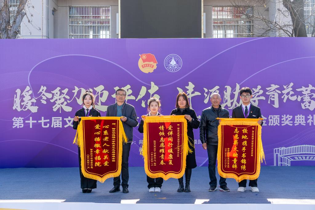 活动现场,翁家寨村委会、西安天爱启智学校、滦镇养老公寓向青年志愿者服务团赠送锦旗,表达对其17年公益坚守的感谢;咸阳市小桔灯公益服务中心委托校团委蒋昱辰老师向青年志愿者服务团颁发“优秀志愿者团队”称号。青年志愿者服务团团长龙吉航表示,未来将继续深耕“沣河行动”,围绕文化传播、儿童陪伴等开展更多贴合乡村需求的活动,助力“小花蕾”成长与乡村发展。