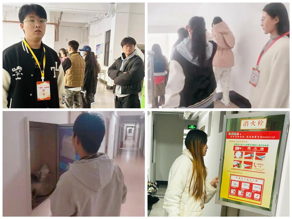 每日不定时段,楼层长们佩戴工作牌穿梭在楼层走廊、楼梯拐角、消防通道等关键区域,细致排查消防设施完好度、疏散通道畅通情况,并逐个宿舍走访,聚焦违规用电、私拉乱接电线、大功率电器使用等核心安全隐患,对发现的问题当场登记、现场督促整改,形成“排查—处置—反馈—复查”的闭环管理机制。在冬季安全防控关键期,重点加强设备使用规范检查与传染病预防宣传,通过案例讲解、现场示范等方式,提升同学们的安全防范意识和应急处置能力。