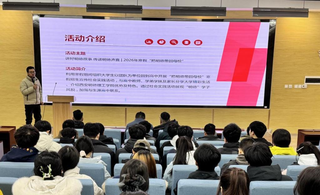 大会的顺利举行,为2026年寒假“把明德带回母校”社会实践活动正式拉开帷幕。此次活动不仅激发了明德学子参与假期实践的热情,也将助力加强与各生源中学的互动联系,推动构建全员参与、多方联动的招生宣传新机制。