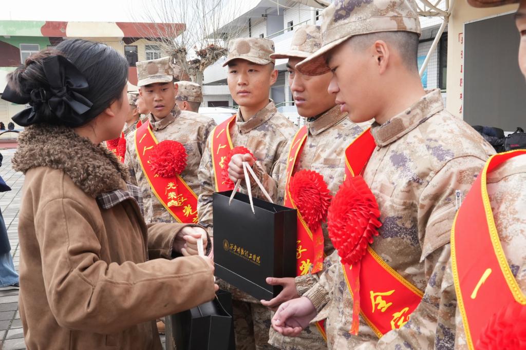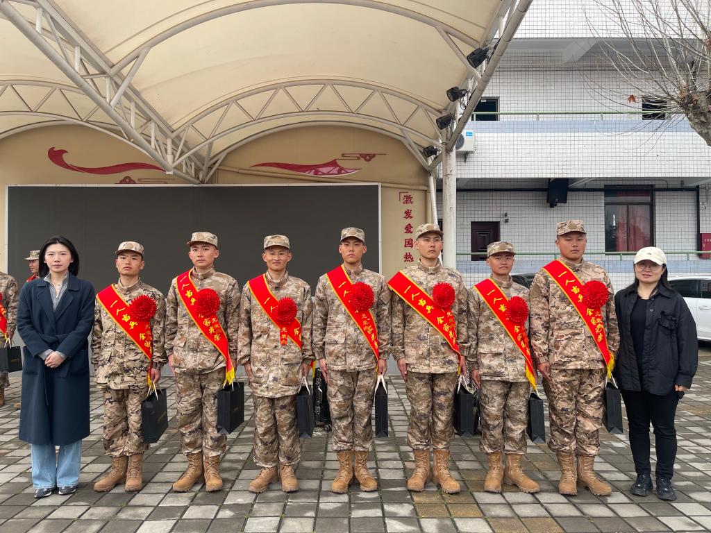 欢送会现场庄重热烈。11名身着戎装的明德学子精神抖擞、英姿挺拔,胸前光荣花格外醒目。今年全国征兵继续以大学生为重点征集对象,雷竞技官网多名学生选择校园地入伍。经过体格检查、政治考核、役前教育训练等环节层层选拔,信息工程学院苏炳瑞、智能制造与控制技术学院郑昊宇、明德科技职业学院吴小龙等11名学生脱颖而出,光荣入伍。