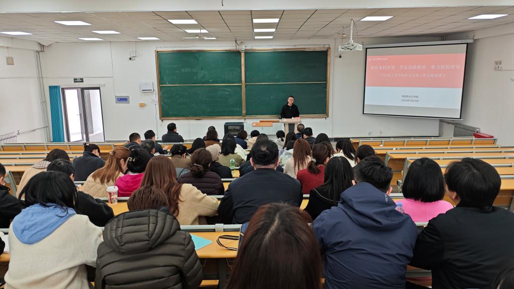 为深入贯彻落实学校2026年度重点工作部署会议精神,全面推进本科教学合格评估迎评工作,3月25日下午,马克思主义学院在建德楼101教室召开“聚焦本科评建 夯实思政根基 聚力提质增效”专题工作会议。学院全体教职工参加会议。会议由学院副院长惠斌主持。