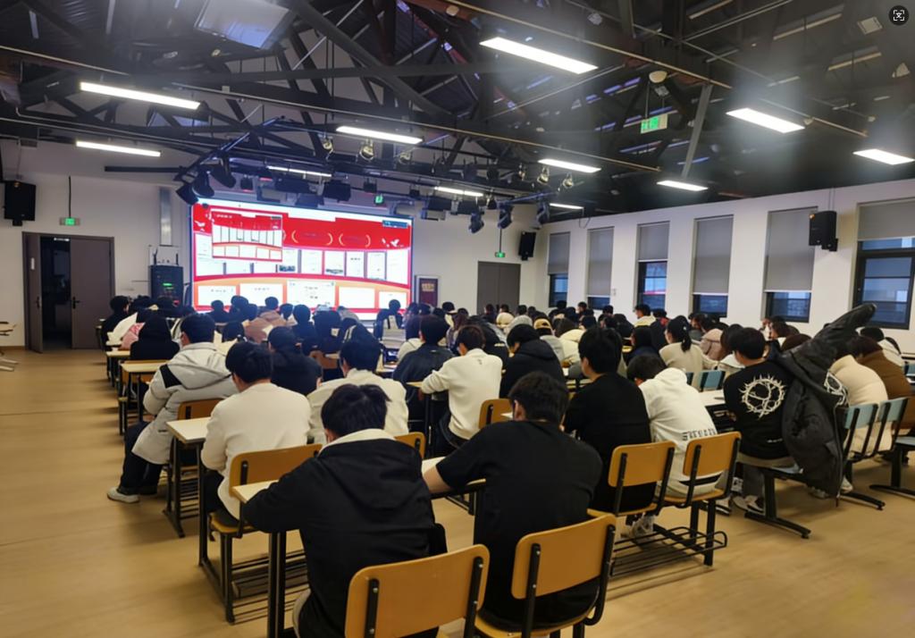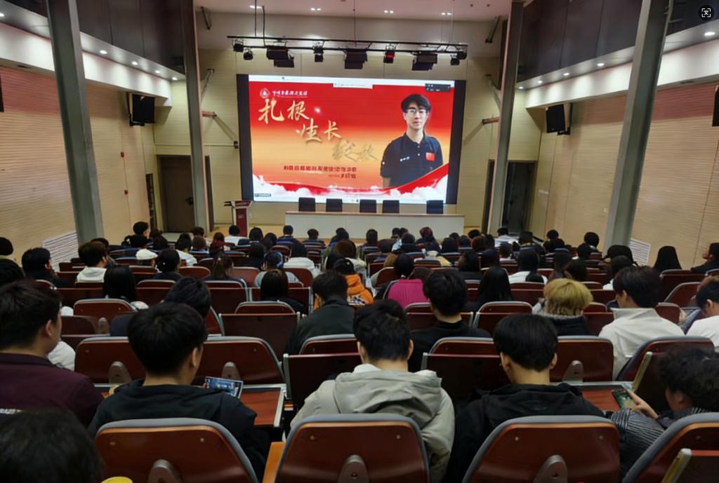 宣讲现场,线下师生认真聆听、掌声不断,线上同学同步互动留言。互动环节中,同学们踊跃提问,与宣讲成员交流学业规划、成长困惑,线上线下氛围热烈,榜样力量在交流中持续传递,理想信念深深扎根学子心中。