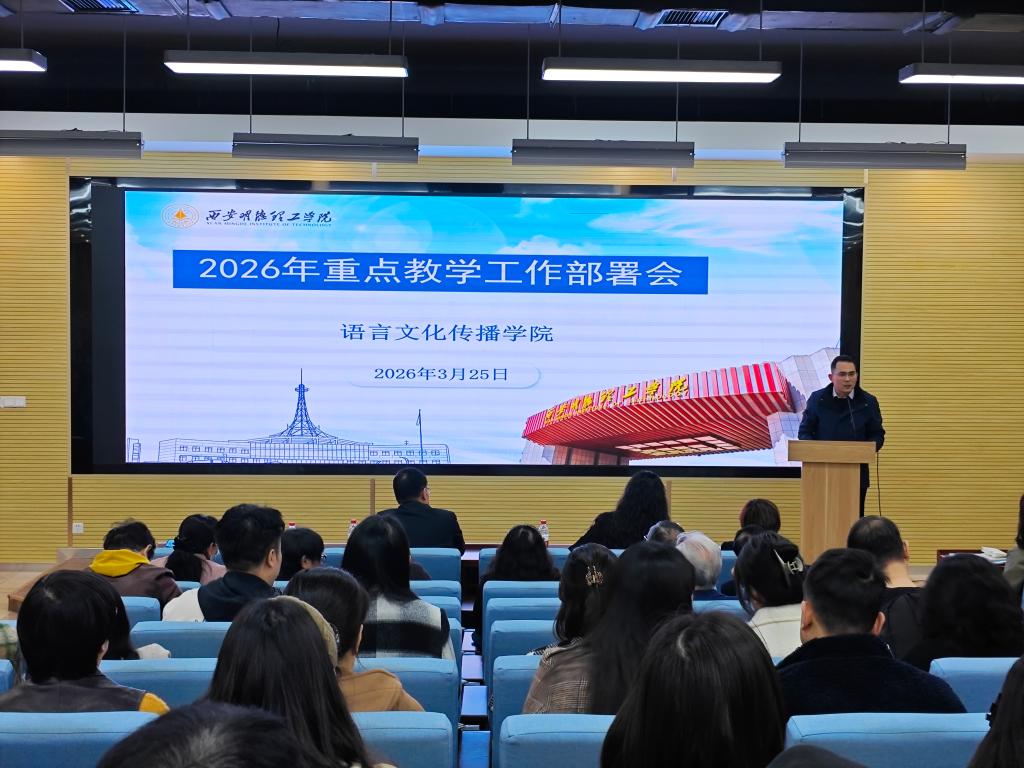 3月25日下午,语言文化传播学院召开2026年重点教学工作部署会,全面部署本年度重点教学及各项相关工作。学院领导班子、全体教师参会,会议严格按照既定议程有序推进,确保各项部署要求传达到位、落地见效。
