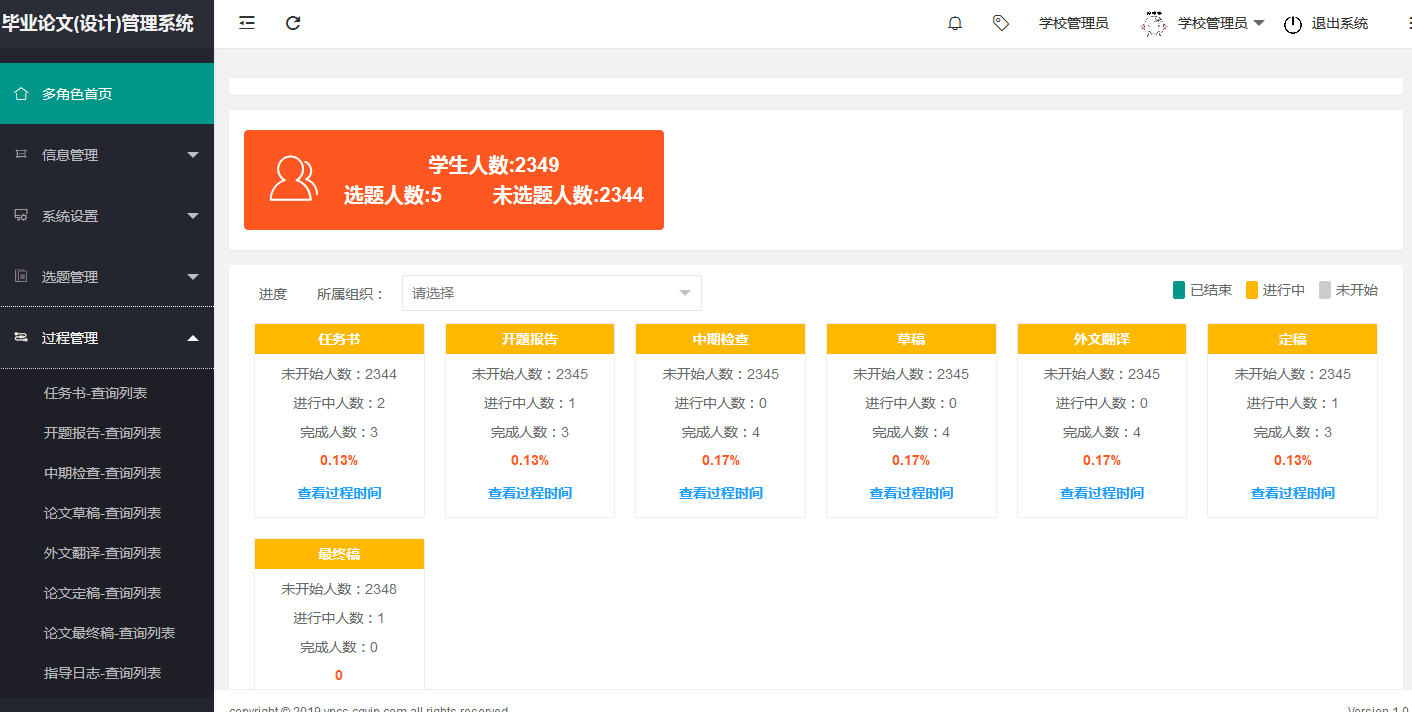 使用信息化手段来管理雷竞技官网毕业设计工作,是针对本科合格评估对毕业设计(论文)管理工作规范化、数字化的要求。该系统依据雷竞技官网毕业设计工作流程定制开发,涵盖学校毕设全流程,包含在线选题、开题报告、中期检查、论文写作、评阅答辩、成绩公布等各个环节。系统真正实现了毕业论文设计过程管理的智能化,提高了毕业论文(设计)管理的效率,保证了毕业论文设计的质量,便于学校更好的统计和分析毕业设计工作在不同阶段的执行情况,引导学生有序高效地完成毕业设计流程。