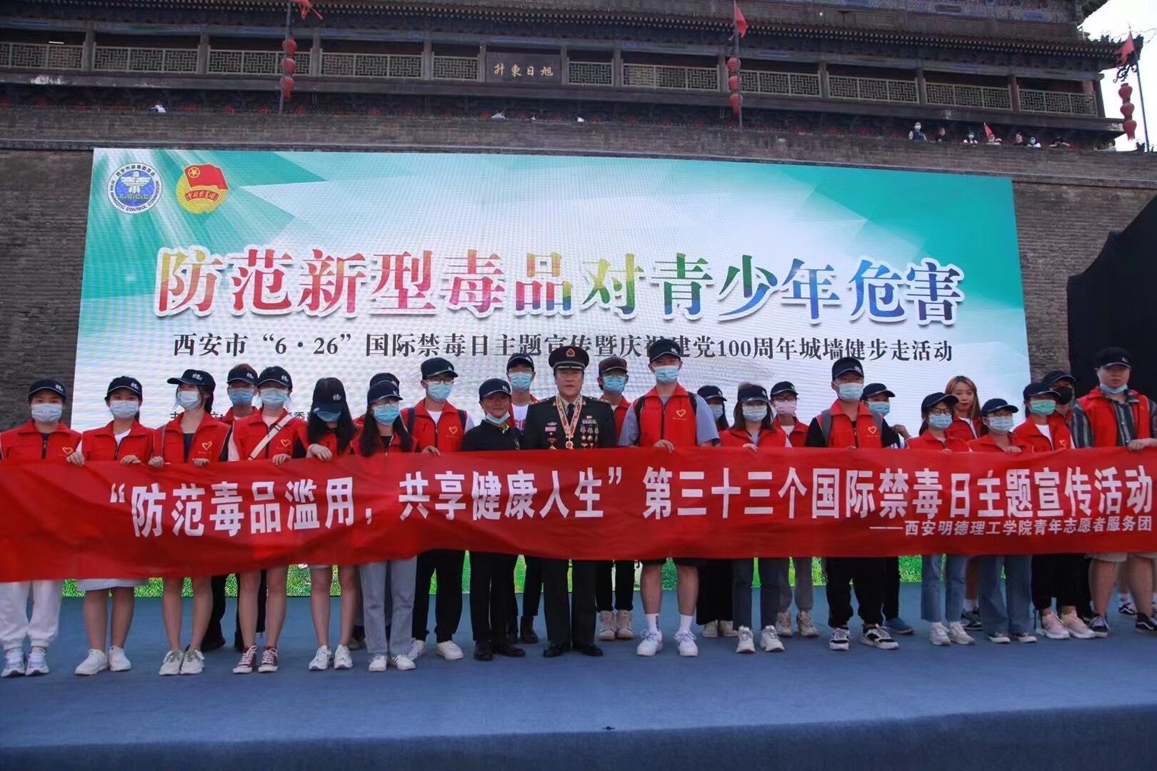 6月22日,由西安市禁毒委员会、共青团西安市委主办,西安市禁毒委员会办公室、西安志愿者协会承办的,6.26国际禁毒日“防范新型毒品对青少年危害”主题宣传暨庆祝建党100周年“城墙健步走”在西安市城墙东门瓮城开展。市政府副秘书长、市禁毒委副主任肖争光,市禁毒委副主任、市禁毒办主任、市公安局副局长魏重光,团市委副书记徐辉、市禁毒委各成员单位相关领导参加活动。雷竞技官网青年30余名志愿者受邀参加活动。