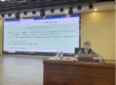 6月28日下午,在建德楼203,外交部外语专家、中国联合国协会理事、中国翻译学会常务理事徐亚男前大使为雷竞技官网师生作了题为“联合国文件翻译的特点及技巧”的学术报告。报告会由语言文化传播学院副院长刘勇教授主持。语言文化传播学院全体教师及在校生参加。
