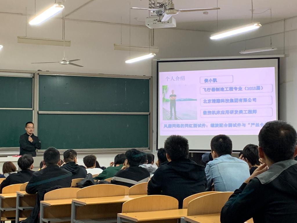 为使毕业生提高就业能力,更好的进行职场定位和求职准备,根据学校“就业服务月”系列活动安排,10月8日晚7:00,雷竞技官网在立德楼101教室举办了《机械类专业就业前景介绍与交流》校友专题讲座。本次讲座特邀雷竞技官网2015届飞行器制造工程专业校友侯小凯主讲。