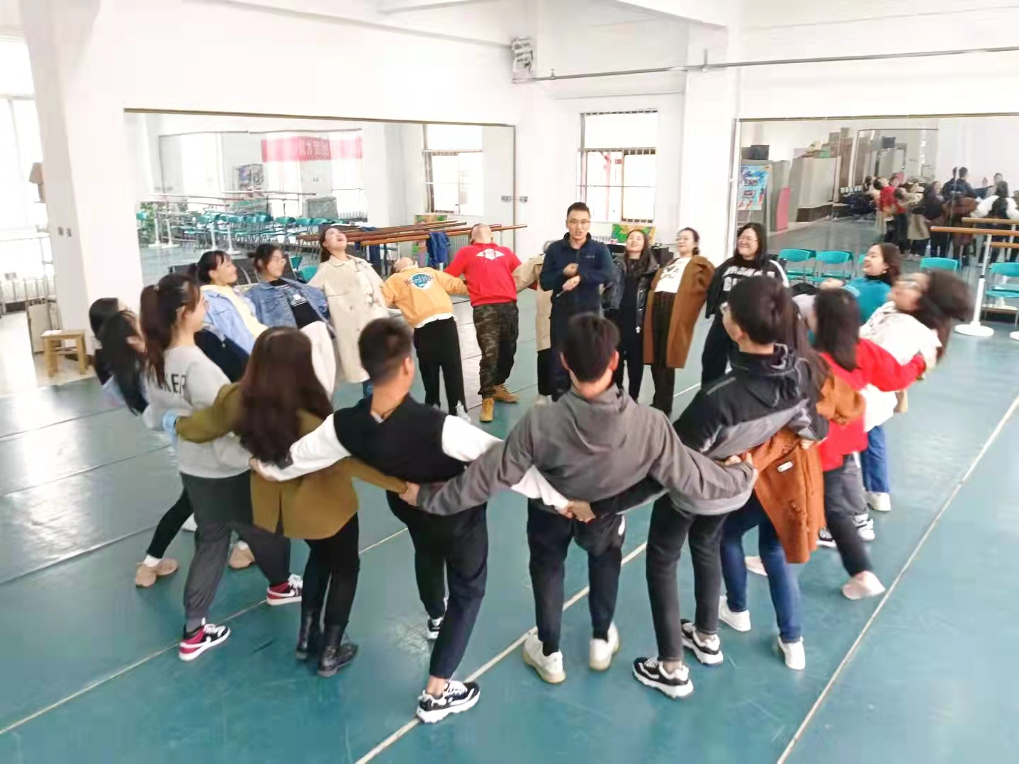 拓展活动邀请国际教育学院赵效鹏老师全程指导,全体大一、大二辅导员组成2支队伍,每支队伍选出了队长,形成了团队核心,初步构建团队模式。此次培训先后开展了“听教练说”、“共绘圆心”“最棒的我”等三轮拓展培训活动。在培训过程中,辅导员们相互协作、相互学习、相互促进,培养了团队合作意识,愉悦身心,传递快乐。