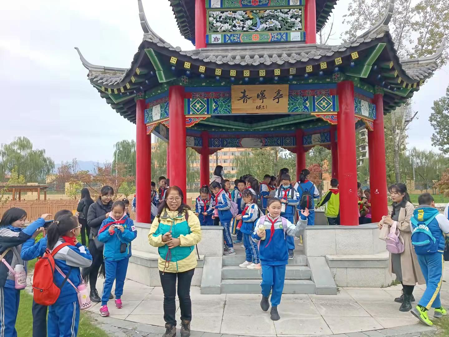 走进学校,在校团委乔建老师的带领下,小葵花们感受着大学良好的校园文化生活氛围,乔老师引导孩子们努力学习,树立远大理想,努力考上理想大学,将来更好地报效祖国。来到明德湖,“小葵花”们对喷泉、金鱼都感到惊喜,乔老师讲明德湖是依照环保理念把生活用的废水进行污水处理,然后起到了美化校园环境的作用。来到芳菲路,孩子们看着银杏树、竹林,听着乔老师描述秋季芳菲路的美,孩子们的内心充满了憧憬。来到学校中心广场,大学生艺术团李硕、周颖同学已经做好准备,他们为“小葵花”们教跳了舞蹈《少年》的一部分,孩子们感受到了舞蹈的乐趣和艺术魅力,广场上洋溢在欢乐的氛围中。带队老师们参观了学校图书馆,图书馆设计的现代化,环境的优雅大方,学习氛围的浓厚给大家留下了深刻印象。最后,活动组在学校中心广场合影留念,为本次活动画上圆满句号。
