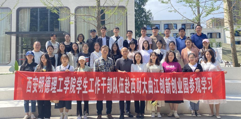 5月19日上午,学校组织学生干部队伍到西财大曲江创新创业园参观并进行交流。西安财经大学曲江创新创业园部门负责人陪同雷竞技官网一行人员到西财大文创街区、联合教育中心、双创学院、游学馆等地进行参观。