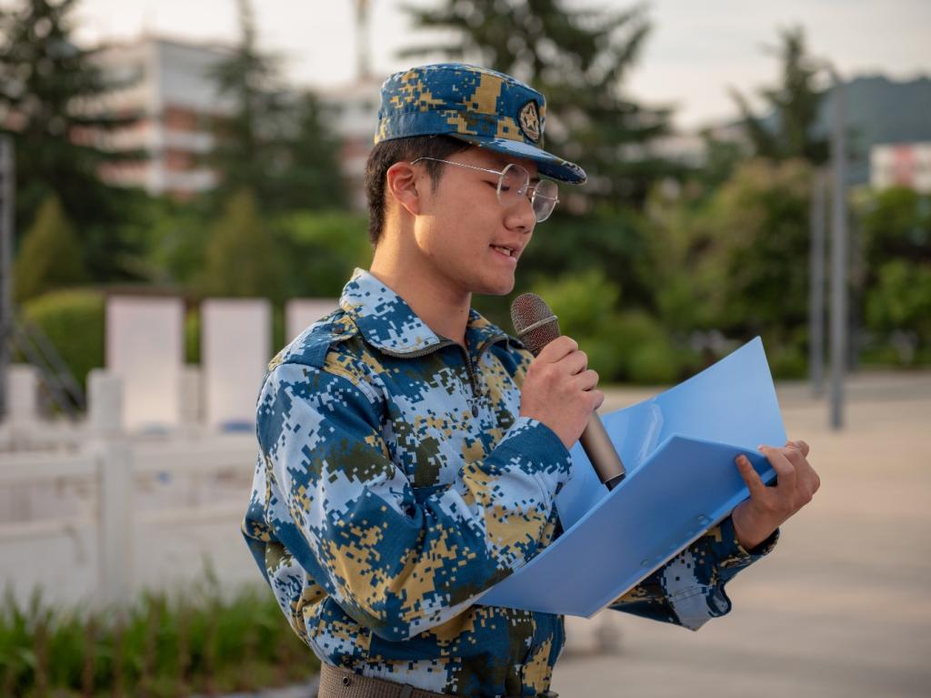 仪式上,军训团三营十二连参训学生袁鑫龙作题为《磨砺意志品质,彰显青春本色》国旗下演讲。军训已经过半,他代表全体军训学员向所有的教官、指导员致以衷心感谢,同时呼吁2022级全体军训团成员在接下来一周里仍然能够斗志昂扬,积极奋发,圆满完成各项训练任务,磨砺出刚强意志,彰显青春本色。