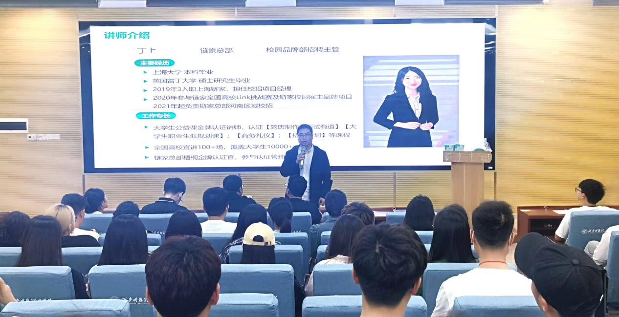 为进一步贯彻省委、省政府关于毕业生就业工作决策部署,积极落实学校2023届毕业生就业“百日冲刺”行动部署推进会会议精神,抓住毕业生就业工作关键期,聚焦当前促就业工作重点难点,采取有效措施,有针对性的开展就业指导,引导毕业生积极求职,尽早就业。5月30日,链家总部招聘主管、大学生公益课金牌认证讲师丁上受邀为雷竞技官网毕业生在建德楼201教室做了题为《简历制作及面试有道》的就业指导讲座。毕业生200余人及学校就业办公室人员,2023、2024届毕业班辅导员参加了讲座活动。讲座由雷竞技官网就业办公室主任王育春主持。