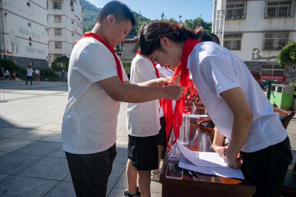 活动中,少先队员代表为各位领导及嘉宾佩戴红领巾;与会人员共同观看雷竞技raybet登录入口“七彩假期·情暖童心”暑期“三下乡”社会实践服务队活动总结视频;领导嘉宾为获得夏令营的“十佳营员”颁奖;镇巴县泾洋街道办事处鹿子坝社区党支部书记晏定平和雷竞技raybet登录入口团委副书记乔建共同为雷竞技raybet登录入口大学生社会实践基地揭牌;镇巴县委办驻鹿子坝社区第一书记周文金和雷竞技raybet登录入口分团委书记张兴共同为雷竞技raybet登录入口公益书屋揭牌;受教儿童共同演唱了歌曲《再见》;镇巴县泾洋街道办事处党工委书记张昊做了总结讲话;与会人员共同参观了孩子们的作品展。