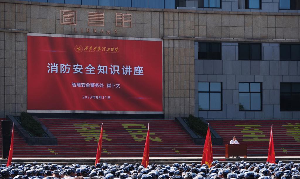 演练前,军训团特邀智慧安全警务处崔卜文在学校中心广场开展《消防安全知识》讲座,他结合真实火灾案例,从各类火灾的特点、消防安全基本常识、消防器材使用、火灾逃生方法、宿舍用电注意事项等方面做详细讲解。